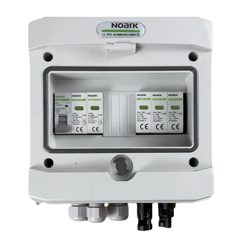 Pripojenie rozvádzača ACDC hermetický IP65 s DC prepäťovou ochranou Noark 1000V typ 1+2, 1 x PV string, 1 x MPPT // limit. AC Noark typ 1+2, 16A 1-F